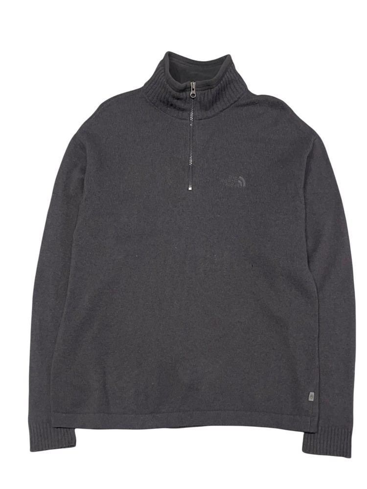 노스페이스의 맨즈 하프 집업 니트입니다. 전면 작은 구멍 및 미세한 얼룩 있는 상태입니다.