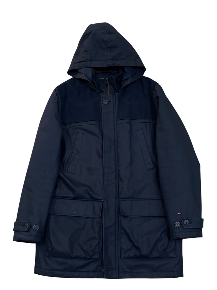 타미힐피거의 맨즈 롱 자켓입니다. 탄탄한 소재와 퀼팅 안감으로 제작. 우수한 컨디션입니다.